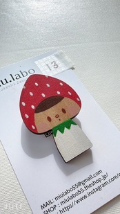 いちごをモチーフにしたこけしのブローチで