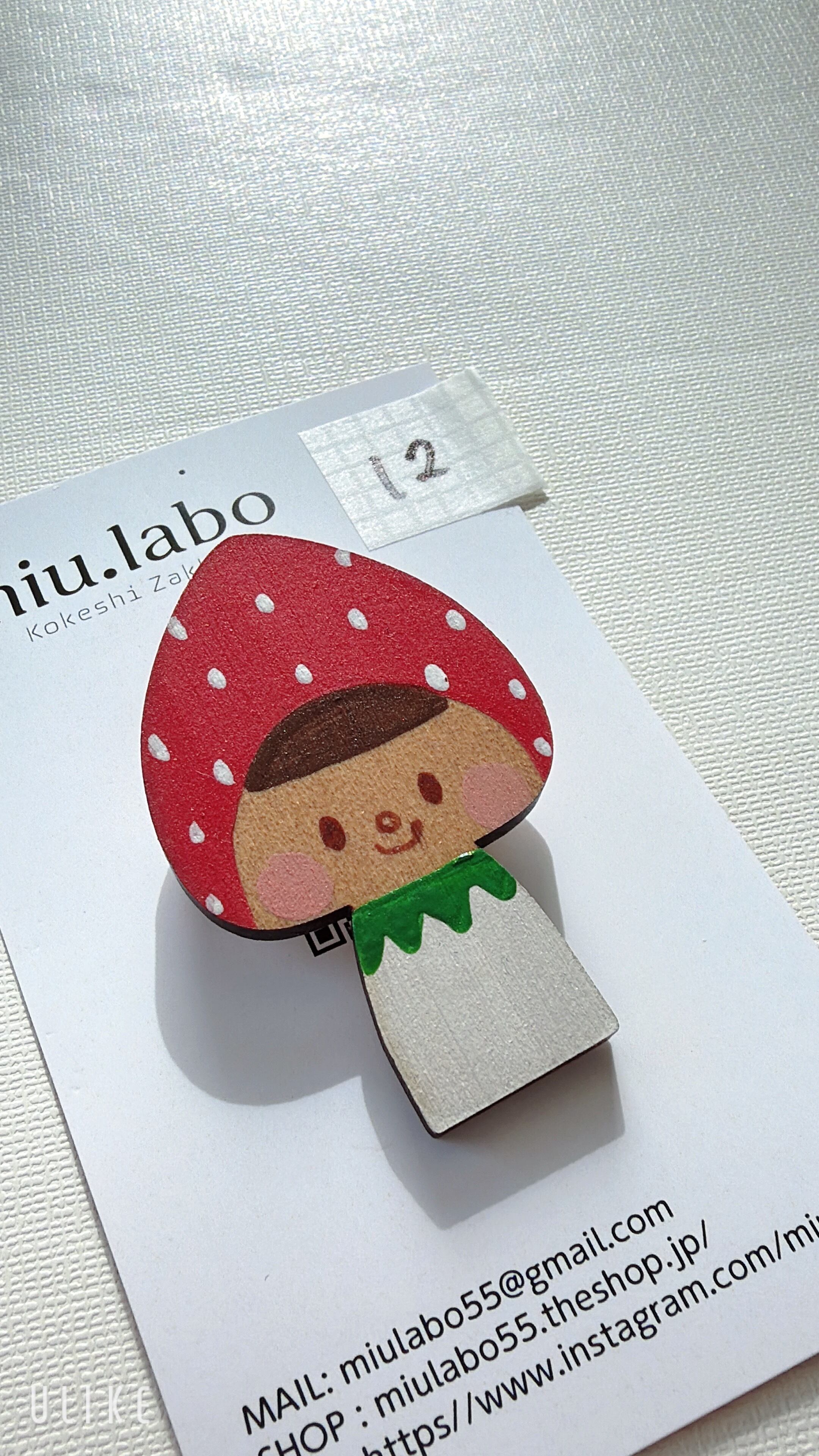 いちごをモチーフにしたこけしのブローチで