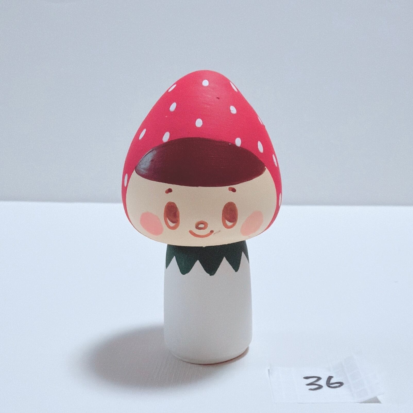 This is an original strawberry-shaped kokeshi doll created by miu.labo.