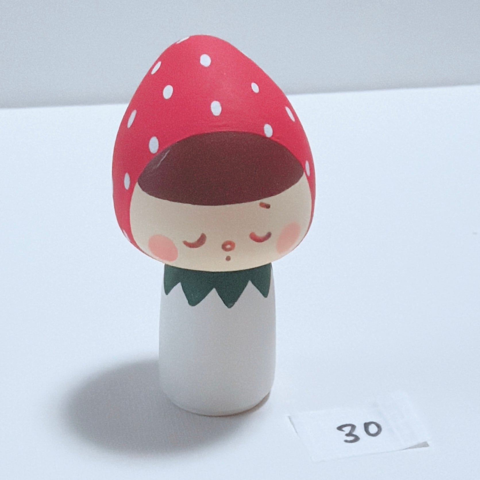 This is an original strawberry-shaped kokeshi doll created by miu.labo.